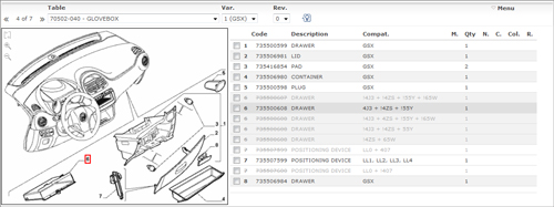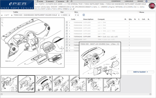 of the previous vehicle specification selections (e.g.: engine versions, L/R